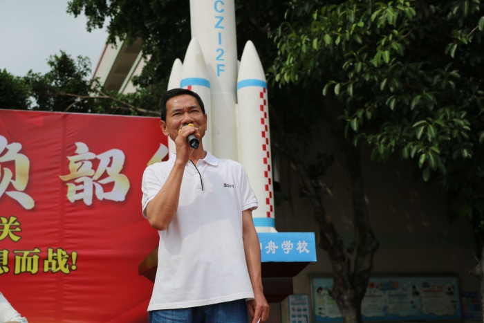 神舟學校常務校長奚水清、副校長農(nóng)尚華、教導處主任韋紹祖、德育處主任韋德敏、督學吳就良、全體初三教師及學生參加了本次大會。大會由教導處干事陳幸玲主持。