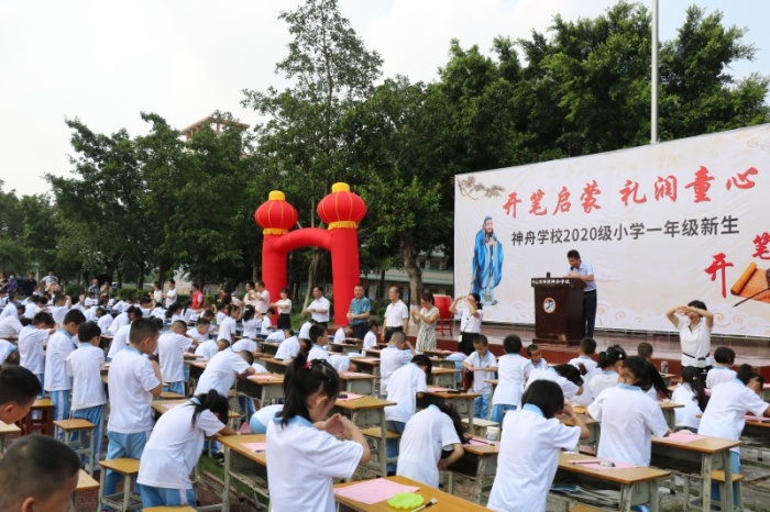 2020年9月4日星期五,神舟學(xué)校一年級(jí)全體新生及家長(zhǎng)在學(xué)校運(yùn)動(dòng)場(chǎng)上舉行了一場(chǎng)有意義的傳統(tǒng)文化教育活動(dòng)——新生入學(xué)“開筆禮活動(dòng)”。