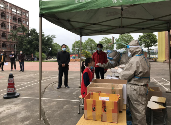 8:30,在神灣醫(yī)院陸志良主任的帶領(lǐng)下的工作人員,進(jìn)入校園布置安排了用于核酸檢測(cè)的設(shè)備和醫(yī)療物品,隨即開展對(duì)學(xué)生進(jìn)行核酸檢測(cè)工作。