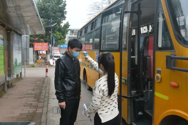 校車出發前一天下午消毒人員用含有效氯250mg/L—500mg/L的含氯消毒劑進行噴灑消毒處理;校車出發前打開車窗通風,然后出發去站點接學生;校車到達站點后,跟車老師鄭鳳嬌逐一對乘坐校車學生進行體溫測量,發現李同學的體溫是37.3度,鄭鳳嬌老師開始對其進行問詢,問詢內容包括學生的班別、姓名,以及是否在14日內從疫區返回或途經疫區、或與疫區回來的人士有過接觸,問完情況后,鄭老師撥打家長電話,由家長到停車點接學生到醫院就診,并報告給學校領導,學校領導層層上報。余校長接到報告后,立刻向神灣鎮急診中心報告。