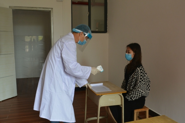 學生在教室午休前,班主任對全班進行午檢,在體溫測量時發現楊同學體溫達到37.3度,經詢問后,班主任高老師帶楊同學離開課室,并立即通知值日行政。值日行政了解情況后,通知班主任將剩余學生帶離課室到空曠處,通知學校疫情消毒人員,對教室進行消毒。由值日行政將楊同學帶到健康觀察區,校醫再次檢測體溫,并詢問情況,由值日行政撥打電話通知家長接回,并囑托帶往醫院就醫,然后上報校長,余校長接到報告,立刻向神灣鎮急診中心報告。