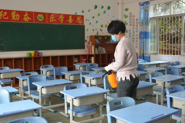 下午放學鈴聲響后,班主任到班組織學生放學,乘坐第一輪校車的學生在課室門前走廊按要求排隊,班主任整隊后有序地帶領學生到乘車點上車;走讀生聽到放學鈴后,由班主任整隊有秩序地帶到學校大門離開學校;班主任留在課室繼續組織乘坐第二輪校車的學生在課室做作業,學生聽到廣播后排隊到乘車點上車。學生全部離開學校后,班主任用含氯消毒劑進行噴灑。