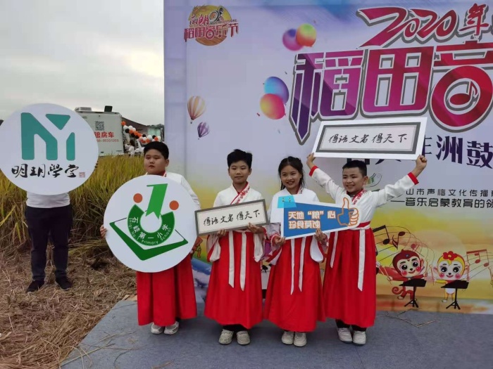 11月21日下午,石岐第一小學吟誦隊的同學們在梁小玲副校長和劉芳、黃雁娥老師的帶領下,來到南朗鎮左步村參加“2020年稻田音樂節”活動,為音樂節帶來了吟誦節目表演——《憫農》。