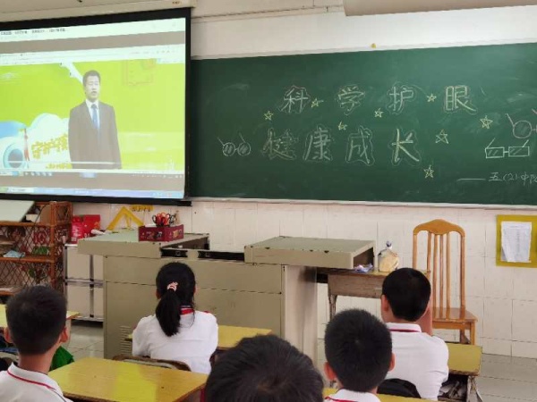 本次班會由梁小玲副校長主講。她首先給孩子觀看了一個北京同仁醫院眼科主任關于預防近視的講座。視頻從近年來近視率的變化、近視的形成原因、近視的表現和如何預防都做了詳細的介紹。讓孩子們印象特別深刻的是不同近視度數看物體的效果,讓孩子們直觀地感受到近視給學習生活帶來的不便,還會成為一種嚴重的公共衛生問題。最后重點給孩子們介紹了愛眼護眼,預防近視的方法:不能長時間看電視,玩手機,Ipad等電子產品,時間最好自覺控制在30分鐘以內;讀書寫字堅持做到“三個一”;每天認真做好眼保健操,放松疲勞的雙眼;多吃有益于眼睛的食物:胡蘿卜、菠菜、番茄、藍莓、紅棗、雞蛋、蘋果、海帶等。