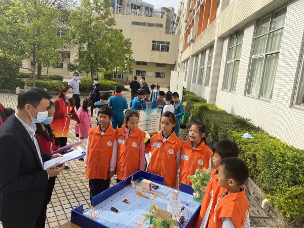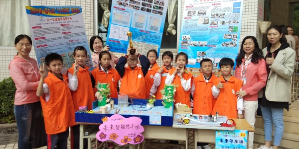 本年度“小小科學家”分為專題探究和STEM項目兩類展評。專題探究主題為“生活中的科學”。參加隊伍須對相關生活問題進行資料搜集和探究,亦可選擇運用科學原理,針對生活問題提出改善方案、建議或解決方法。探究主題要有科學內容及可探究性,并適合學生的程度與能力。石岐第一城小學四(1)班的何永進、王祉喬和陳在宇同學以“比一比 誰的手指更干凈”參加了本次活動。探究小組成員在輔導老師余秋蔚和鐘建梅的指導下,設計了三個對比實驗,分別檢測同學們洗手后不同時間段的手部衛生狀況、在不同活動場所上課后的手部衛生狀況、不同年級段學生課間手部衛生狀況。通過分組實驗,收集了多次的實驗數據,整理數據統計表并進行分析,測試學校部分同學的手部潔凈度,借實驗數據警醒同學們積極洗手、科學洗手,防疫抗疫。展評活動中,探究小組在現場進行的手部潔凈度快速檢測實驗吸引了眾多活動參與者的關注。經過評委們的認真評審,該項目最終獲得一等獎的佳績。 STEM項目主題為“未來交通”,“未來交通”以實物模型展示,模型圍繞交通問題開展。李群嬋和蔡鈺煬老師指導四(1)班廖智美、鐘藝、劉思源、周璟希、梁子軒、肖樂軒六位同學以“未來智能停車場”模型參賽。他們首先設計問卷,利用“問卷星”進行一場線上問卷調查和線下“頭腦風暴”,了解人們對停車場的功能或設計有哪些需求。接著查閱書籍,上網搜索,調查訪問,了解如今國內外有關停車場設計的資料和發展,搜集各種解決問題的方法和工具。經過多次論證,小組提出了“疫情防控引導停車場”、“防澇自動報警停車場”、“自動澆灌智能環保柱子”、“關愛特殊群體停車場”四大主題設計構思,分工合作,選擇自己感興趣的切入點進行思考,互相幫助,畫出各個創意設計的圖紙,并在專業人士的支持與幫助下,完成停車場模型的制作和測試改進。他們的作品得到了評委們的肯定與贊賞,獲得二等獎的好成績。