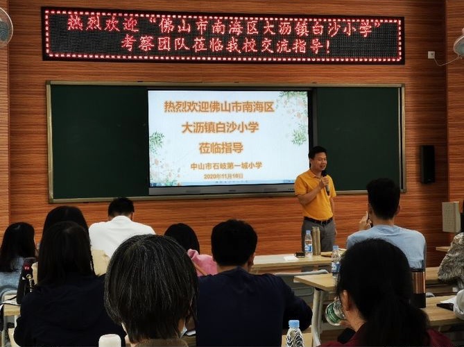 11月10日上午,佛山市南海區(qū)大瀝鎮(zhèn)白沙小學(xué)的行政領(lǐng)導(dǎo)和骨干教師們來(lái)到石岐第一城小學(xué)交流學(xué)習(xí)。梁炳根校長(zhǎng)和學(xué)校“430科普微課堂”課題組成員們熱情接待了來(lái)賓,并帶領(lǐng)他們參觀校園,了解學(xué)校“科普中國(guó)校園E站”建設(shè)情況。