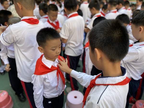 高高飄揚的隊旗指引我們前進的方向,胸前的紅領巾滿載著我們的理想信念,激勵我們不畏艱險,努力拼搏。加入少先隊是我們成長道路上重要的一環,希望新老隊員們繼續傳承紅色基因,爭做新時代好隊員。