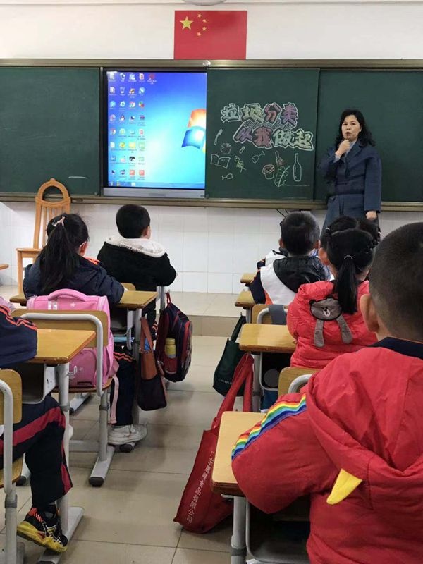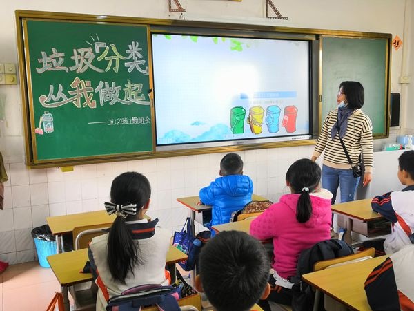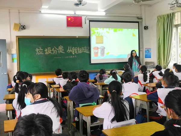 班會(huì)課堂上,老師們?cè)⒔逃跇?lè),扎實(shí)開(kāi)展環(huán)保教育,通過(guò)豐富多樣的方式為學(xué)生傳授垃圾分類(lèi)知識(shí),讓學(xué)生了解垃圾分類(lèi)的意義。首先,班主任們通過(guò)視頻讓學(xué)生們了解現(xiàn)在環(huán)境污染的嚴(yán)重性,垃圾分類(lèi)的迫切性。然后,班主任講解了垃圾分類(lèi)的相關(guān)知識(shí),生活中產(chǎn)生的垃圾的種類(lèi),可回收垃圾的利用價(jià)值,有毒垃圾的危害,讓學(xué)生了解生活垃圾的分類(lèi)方法。有的班級(jí)教師以提問(wèn)、小游戲等多種教學(xué)手段,生動(dòng)地為學(xué)生們展現(xiàn)如何區(qū)分可回收垃圾、有害垃圾、廚余垃圾、其他垃圾;有的班級(jí)教師以實(shí)際事例向?qū)W生展示如何讓“廢物”得以再利用,教育學(xué)生能在日常生活中主動(dòng)、自覺(jué)地進(jìn)行垃圾分類(lèi),愛(ài)護(hù)我們共同的家園。
