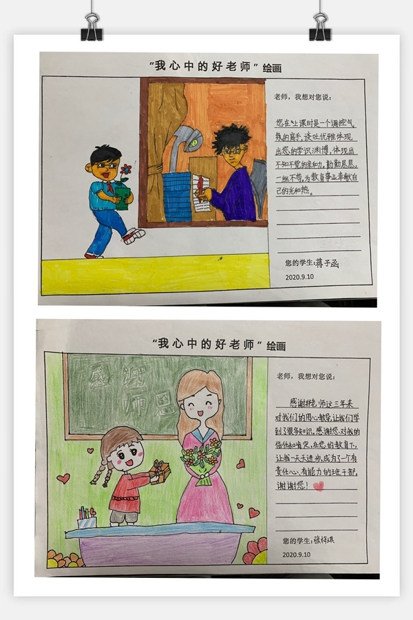 教師不忘初心,立德樹人,學生們更難忘師恩。學校開展了以“我心中的好老師”為題的繪畫活動,學生們紛紛畫出了他們心目中老師的模樣,并為老師寫上了滿滿的祝福與感謝。與此同時,學校的學生禮儀隊一早便整齊站立于校門口,手捧鮮花,代表全體學生為老師們送上節日的祝福。學生滿滿的祝福與感恩聲讓整個校園充滿了溫馨與愛。