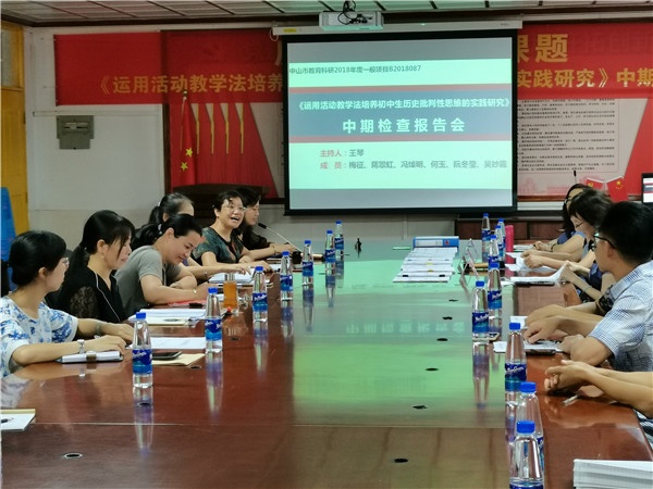 9月8日下午,啟發(fā)中學舉行歷史市級立項課題《運用活動教學法培養(yǎng)初中生歷史批判性思維的實踐研究》中期檢查報告會。參加本次報告會的有中山市教研室歷史教研員、廣東省特級教師、正高級教師、廣東省歷史學科帶頭人樓衛(wèi)琴老師,石岐區(qū)教學研究主任陳再玲老師,中山市初中歷史學科帶頭人、中山市骨干教師梁玉萍老師,啟發(fā)中學祝玉珍副校長,教導主任鄧小斐,以及課題組全體成員。