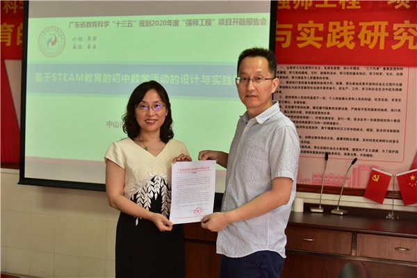 隨后,馮繼有部長為課題頒發立項證書。啟發中學謝永芳校長發言表示支持課題的開展,并會為課題的順利開展提供條件。最后,與會專家與課題組成員合影。