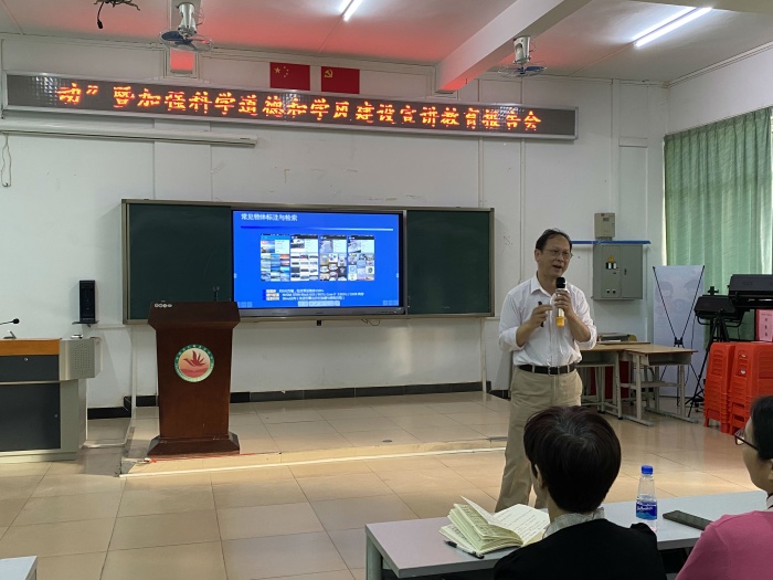 10月19日下午,金風送爽,水碧山青。中國科學院自動化研究所研究員盧漢清教授,為北區中學初二級學生送來2020年中山市“中國科學院老科學家演講團進校園活動”暨加強科學道德和學風建設宣講教育報告會。北區中學趙翠顏校長、博愛小學虞彩花校長出席活動。