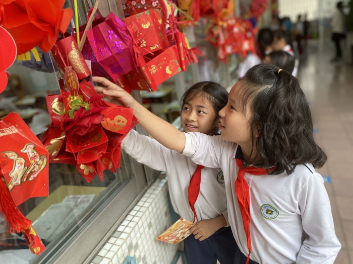 “元宵節(jié),花燈俏。”為了讓同學(xué)們親身體驗傳統(tǒng)文化的魅力,學(xué)校開展了“迎元宵花燈制作”活動。同學(xué)們充分利用彩紙、利是封、空瓶子等身邊的材料,變廢為寶,制作出了一個個創(chuàng)意無窮的環(huán)保花燈,迎接元宵節(jié)的到來。走在教學(xué)樓的走廊上,處處張燈結(jié)彩, 一個個精美的花燈,吸引了師生們紛紛駐足,他們時而欣賞,時而贊嘆。一盞盞花燈成了校園里一道喜氣洋洋的風(fēng)景,整個校園充滿了元宵節(jié)的喜慶氣氛!