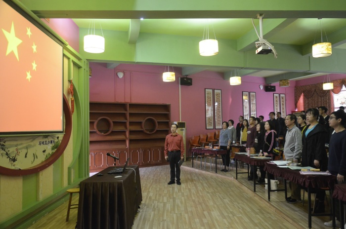 莊嚴的國歌聲奏響后,黨員教師重溫入黨誓詞,全體教師重溫《體育路學校教師宣言》,以飽滿的熱情迎接新學期。會上,孫校長首先感謝全體教職工的辛勤付出,總結表彰假期各部門好人好事。