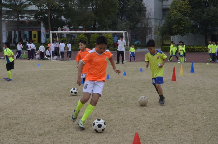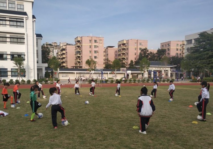 為普及足球運動和培養足球后備人才,體育路學校進行了積極的探索:學校每周在各班開足開齊足球課,讓學生在一年級開始就參與足球運動,并通過一系列有趣的訓練活動中掌握顛球、控球、運球及射門等足球基本動作;每學期組織開展校園足球文化節、“正心杯”班際足球賽等豐富多彩的足球活動,讓學生享受在綠茵球場上馳騁的樂趣,足球運動已經成為了深受學生喜愛的運動項目。在全員參與足球運動的基礎上,學校還積極推進足球社團梯隊建設、組織校園足球隊對學生進行專業培訓,學校足球隊多次在市、區組織的校園足球聯賽中取得優異成績!