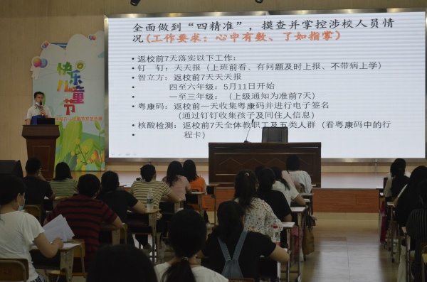 5月8日,學校召開《關于做好疫情防控及學生返校準備工作》教師大會,孫校長動員全體教師要認真做好學生返校準備各項工作。她表示,省、市各級黨政部門高度重視、聯防聯控并做好了總體的部署,學校全體教職工一定要認真落實,將返校工作做得更實更細。學校全面關愛教師身心健康,指導教師關注、落實心理建設。孫校長在會上再次向老師們強調,要認真學習5月6日下午學校心理專職教師在《教師心理健康及自我調適》培訓中提及到的《中山市中小學疫情防控下返校心理建設指引》等心理健康教育文件,做好教師、學生、家長三方面的心理調適,用平和的心態迎接返校復學。