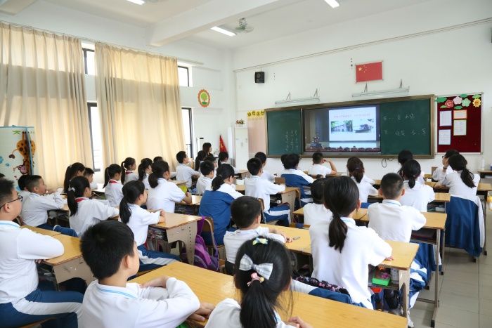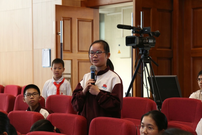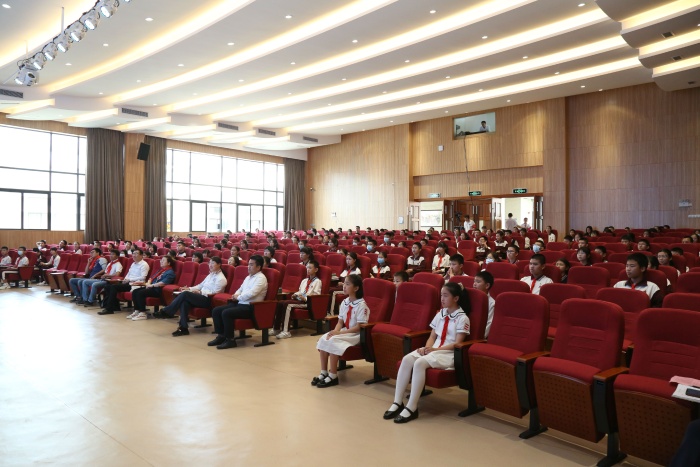 到場的嘉賓還有廣東教育雜志社張家瑜副主任、黃海濱編輯;青島出版社劉瀅編輯。學校馮冠祥常務副校長、杜少君副校長、孫慧濤副校長以及學校黨支委委員們帶領學校七年級師生現場聆聽了此次講座。講座同時通過校園廣播電視直播系統面向全校各年級各中隊全體輔導員和少先隊員展開直播。