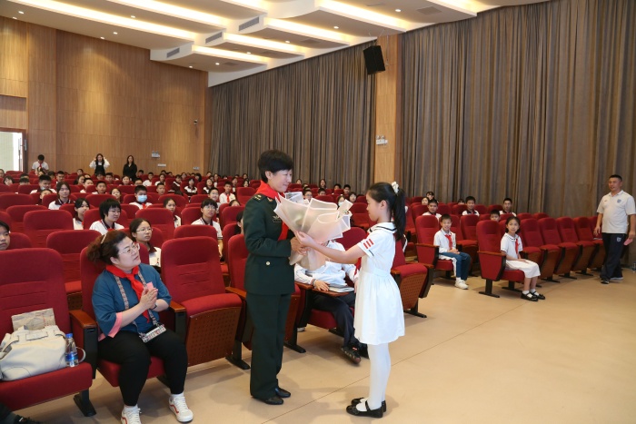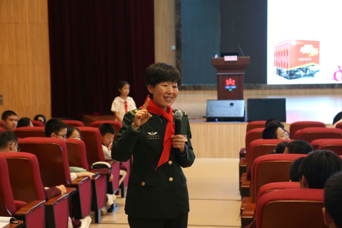 宣講前,學校少工委總隊委總隊長梁智勇同學作為主持人介紹了張艷萍教授。張艷萍,原解放軍總后勤部優秀教員,專業技術五級。長期從事黨史、軍史、中國近現代史教學與研究,主持、參與多項國家和軍隊課題研究,出版著作10余部,發表論文40余篇。其演講善以生動形象的黨史故事,由小到大,由淺入深地闡述主題,開辟了青少年黨史教育新路徑。