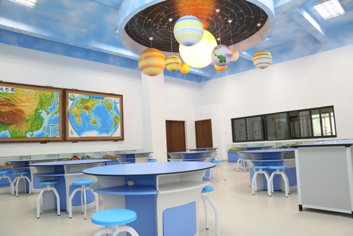 大信學校校舍建筑恢宏大氣,校園綠草如茵,教育教學設施配備齊全,功能完備。配有網絡教室、圖書館、音樂室、綜合報告廳、室內標準游泳場等30多個功能室,每間課室及專用室均配有教學互動一體機等多媒體教學平臺。2020年,學校增設初中部,在原有辦學條件的基礎上,增設生物、地理、化學、物理等實驗室,并對圖書館、籃球場、操場等功能場室進行升級改造,為學校長期發展奠定了堅實基礎。
