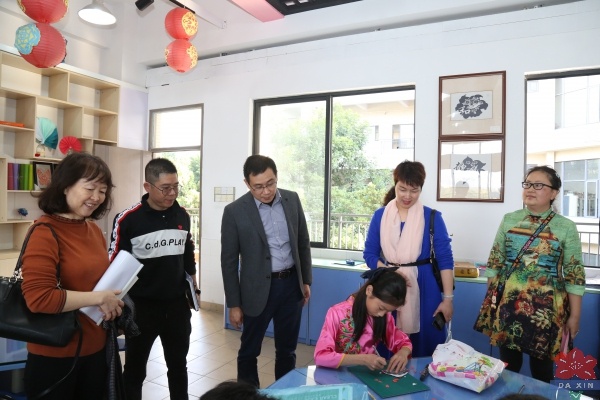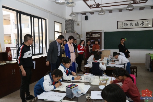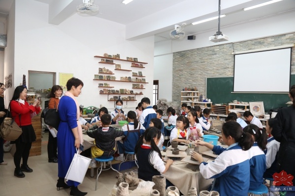 隨后,評估組專家、領導查閱了相關資料,走訪了校園。參觀了學校陶藝館、圖書館、修身學堂、演藝廳等場室,觀摩了武術表演、古詩新唱、民樂合奏,深入陶藝、剪紙、國畫社團活動課堂,了解大信學校中華優秀傳統文化教育實踐情況,并對學校傳統文化特色課程建設贊不絕口。