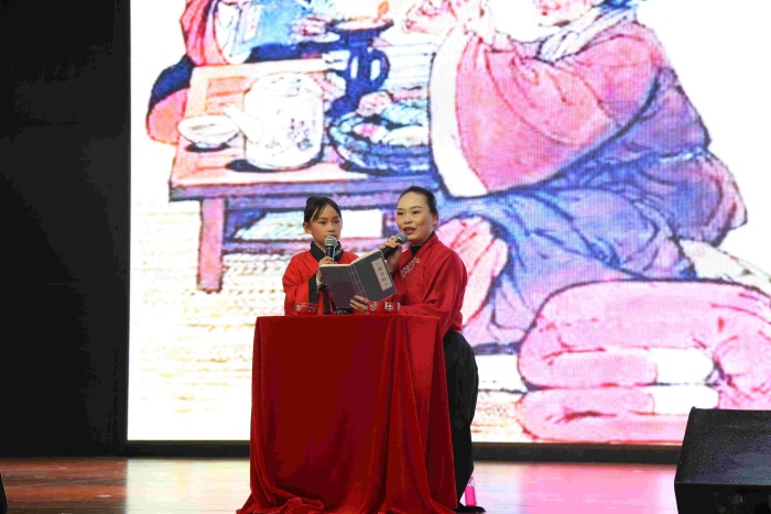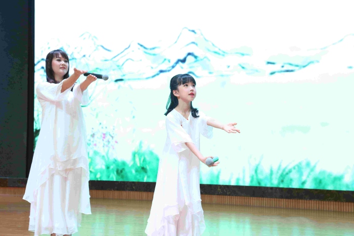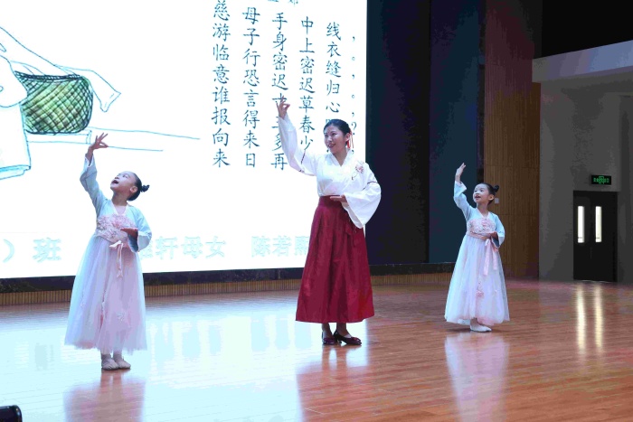 二、三年級的親子誦讀展演異彩紛呈。孩子和爸爸媽媽一起,通過親子共讀、親子共演、親子共誦、親子共吟等多種形式,展現了濃濃的親子閱讀氛圍,表達了對中華優秀傳統文化的熱愛之情。《中華少年》《我和我的祖國》《厲害了我的國》《出塞》《敕勒歌》等節目氣勢如虹;《春》《愛與夢想》《再別康橋》《中華孝道》《在一起》《逆行者》等節目溫暖感人……