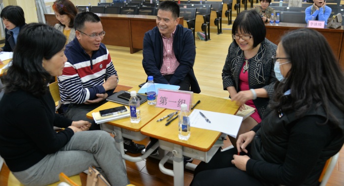 接下來就是工作坊式研討。如何才能讓閱讀推廣落地生根,扎到實處?參與培訓的人員分成8個小組開展研討,在研討的過程中,大家主動發言,討論熱烈。隨后各小組代表進行匯報。大家分別從學校管理層面、轉變教師家長觀念層面、學校陣地建設、閱讀時間的保障、課程的建設、閱讀書目的選擇與充實等各個方面提出了新的想法,讓大量閱讀推廣有了更開闊的思路。