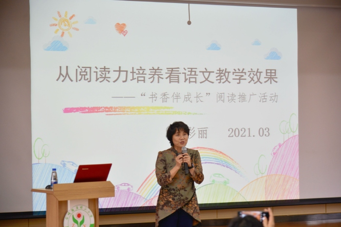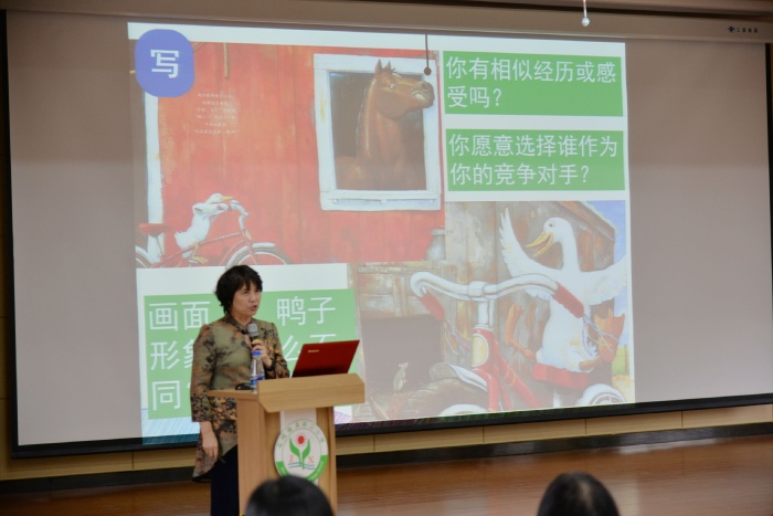 活動分兩部分進行,首先是中山市教師發展中心鄭彩麗老師做了題為《從閱讀力培養看語文教學效果》的專題講座。鄭老師首先從上學期三年級期末測驗卷中的一道題目著手,緊接著呈現石岐街道二年級和四年級閱讀狀況調查問卷,再回歸語文課標,表明目前孩子們的閱讀狀況兩極分化,仍有很大的提升空間。鄭老師指出閱讀力就是學習力,學科語文的教學效果必然要指向閱讀力,并從三個方面結合具體的實例詳細闡述如何通過提高閱讀力提高語文教學效果。無限相信書籍的力量,通過閱讀為孩子構建豐富的社會,讓孩子探索、體驗、認知大千世界,建立孩子與大千世界的聯接。
