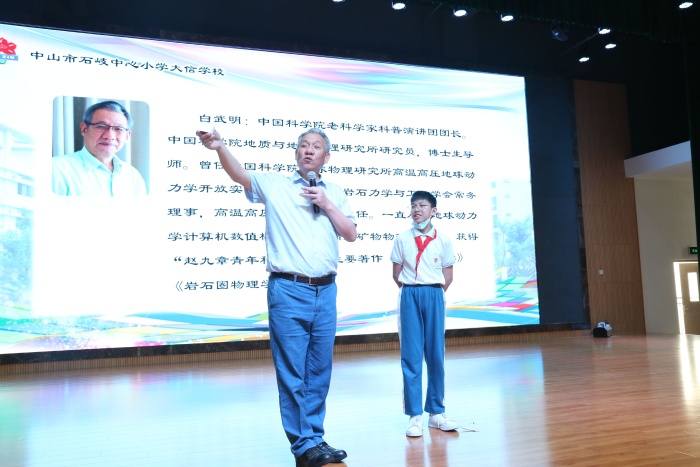 3月31日上午,石岐中心小學大信學校邀請中國科學院地質與地球物理研究所、中國科學院老科學家科普演講團團長白武明教授為五、六年級師生做了一場主題為“科學就在我們身邊《地震、火山和地球》”的專題科普講座。