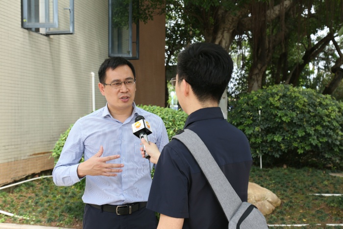 講座后白教授、馮校長及個別學生代表分別接受了來自中山市廣播電視臺記者的采訪。采訪中,白教授對大信學子在講座過程中積極踴躍的發言印象深刻,充分肯定了學生的科學素養,同時對科學科組特色建設既動植物標本制作活動應該如何開展給出了自己的意見。