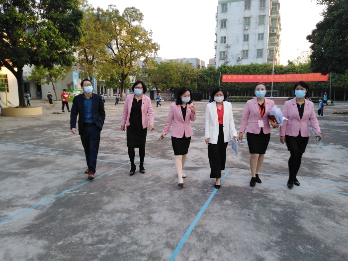 在坦洲鎮(zhèn)教育和體育事務(wù)中心張志略主任的陪同下,坦洲鎮(zhèn)黨委委員溫曉虹7時(shí)10分就來到了聯(lián)一小學(xué)了解開學(xué)情況并就開學(xué)各項(xiàng)工作作指導(dǎo)。校長潘虹、副校長陳麗娥、德育主任甘群帶、總務(wù)主任白雪梅和辦公室主任肖素華陪同一起巡視校園。