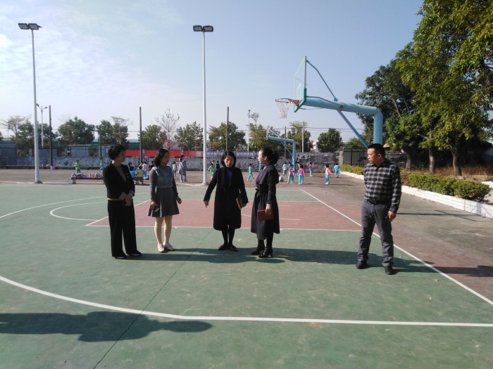 12月8日上午,在鎮教育和體育事務中心何振基老師陪同下,坦洲鎮黨委委員溫曉虹來到聯一小學開展調研工作。聯一小學校長潘虹、教導主任楊維鋒、德育主任甘群帶、總務主任白雪梅和辦公室主任肖素華陪同一起巡視校園并作工作匯報。