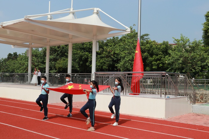 開學季在升旗儀式中拉開了序幕:鮮艷的五星紅旗迎風飄揚,雄壯的歌聲激蕩在校園上空,挺拔的身姿中詮釋著勇氣和擔當,堅毅的眼神里寫滿了中國少年強;接著,郭炳森校長為寄語新學年:他希望全體師生要有家國情懷,新學年要有新目標,勉勵大家尚德善學,身體力行,努力成長為更好的自己;然后,開展了新學期專題講座活動:李偉主任圍繞安全、文明禮儀等方面向全體師生進行“同做中山人,共建文明城”助力中山創建文明城市;麥麗飛主任向全校師生送上最誠摯的祝福,并指出:“習慣成就未來”倡議大家培養良好習慣,注重自主成長。全體師生在班級收看了釘釘實況直播。