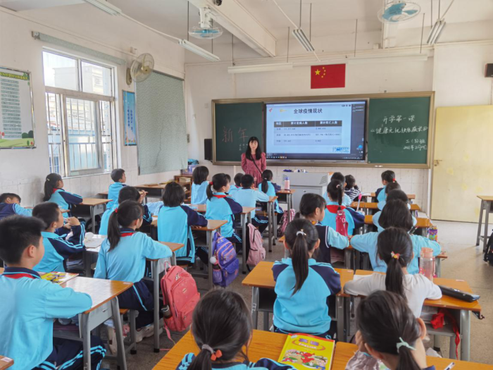 開學禮第一項是全體同學觀看《開學健康安全第一課》。“健康無憂,快樂成長”圍繞疫情防控、禁毒知識、近視防控和心理健康專題,回顧過去風風雨雨,同學們更加珍惜當下生活,努力學習。