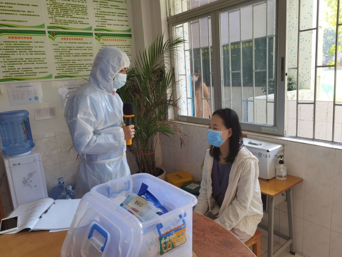 第一個(gè)環(huán)節(jié)是學(xué)生上學(xué)進(jìn)入到學(xué)校,在校門(mén)口進(jìn)行測(cè)溫,馬林校長(zhǎng)對(duì)各個(gè)工作崗位作出安排指示和要求。要求學(xué)生上學(xué)高峰期測(cè)溫工作做到有序高效,同時(shí)要起到體溫篩查作用。第二個(gè)環(huán)節(jié)是上課期間,一名學(xué)生報(bào)告老師不舒服課,有咳嗽和嘔吐癥狀。上課老師隨即指揮班干部轉(zhuǎn)移其他學(xué)生,通知醫(yī)學(xué)觀察老師處理。該生來(lái)到留觀室醫(yī)學(xué)觀察老師初步了解生病學(xué)生的情況,了解其近14天內(nèi)流行病學(xué)史。經(jīng)過(guò)測(cè)溫發(fā)現(xiàn)學(xué)生體溫異常,初步判斷其為非新冠肺炎可疑病例。緊接著,醫(yī)學(xué)觀察老師讓班主任老師通知家長(zhǎng)到校接生病學(xué)生就醫(yī)。隨后,醫(yī)學(xué)觀察老師把情況報(bào)告學(xué)校領(lǐng)導(dǎo)。整個(gè)演練過(guò)程有條不紊。