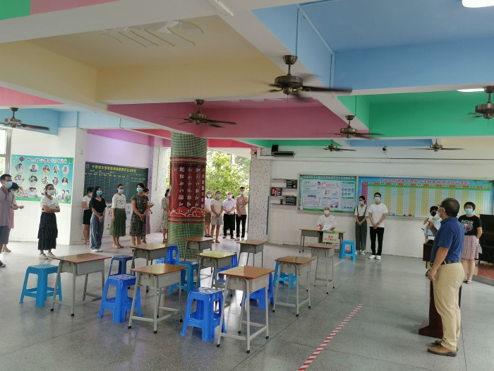 隨著2020年秋季新學(xué)期臨近,學(xué)校即將迎來師生回歸。為全面做好疫情防控工作,進(jìn)一步提高疫情防范和處置能力,熟練掌握學(xué)校疫情防控工作流程。2020年8月31日,坦洲鎮(zhèn)十四村小學(xué)在校內(nèi)舉行返校“新冠肺炎防控”重點(diǎn)環(huán)節(jié)疫情防控演練。演練活動由十四村小學(xué)負(fù)責(zé)衛(wèi)生工作的李秋嬋主席主持會議。當(dāng)日的演練包含學(xué)生錯時入校、學(xué)生入班晨午檢及課中突發(fā)事件的應(yīng)急處置等三個環(huán)節(jié)。