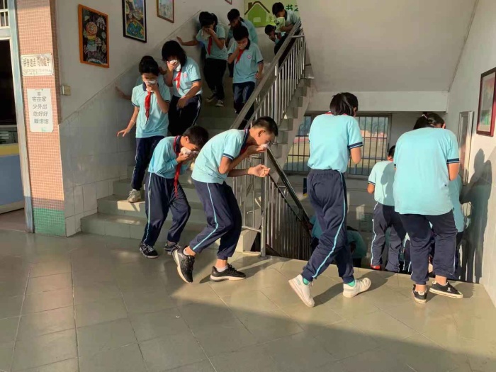 隨著校園內響起的警報聲,在班主任的帶領下,全體學生用濕毛巾、手帕等捂住口鼻有序撤出教學樓;整個應急演練活動規范、有序、緊湊、高效,按照疏散演練方案設定的逃生路線,迅速而有序地到達指定安全位置。