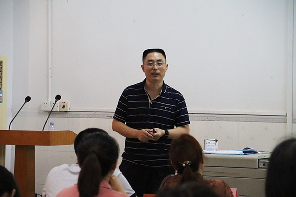 本次活動的主題是:基于英語學(xué)習(xí)活動觀的小學(xué)英語繪本教學(xué)實踐及論文寫作探討。首先,安阜小學(xué)的陳凱麗老師呈現(xiàn)了一節(jié)英語繪本課《I Love You So》,陳老師通過引導(dǎo)學(xué)生觀察圖片情景、人物表情和人物的活動來理解繪本的內(nèi)容;通過合作閱讀引導(dǎo)學(xué)生找出詩歌的韻律;通過模仿寫詩,培養(yǎng)學(xué)生知識遷移的能力,學(xué)會對身邊人表達愛、付出愛。接著,由永一小學(xué)的文學(xué)平老師為到場的老師作“基于英語學(xué)習(xí)活動觀的小學(xué)英語論文寫作”專題報告。文老師從選題背景、論文結(jié)構(gòu)、研究方法、分析討論、主要結(jié)論和參考文獻等方面,詳細(xì)講解了英語論文寫作的方式方法與注意事項。然后由坦洲鎮(zhèn)實驗中學(xué)東武軍副校長,為老師們進行論文寫作指導(dǎo)。東校長從為什么寫論文、什么是好論文、怎樣寫好論文等方面展開分析,分享了自己的經(jīng)驗和心得,又從論文的選材和構(gòu)思,談到了論文大綱的語言提煉、以及論點論據(jù)論證的邏輯性等等,讓參加活動的老師們對于英語教學(xué)論文寫作有了更深的了解,受益匪淺。最后,由坦洲鎮(zhèn)英語中心教研組組長盧云副校長作了活動總結(jié)。盧校長指出:小學(xué)英語教師要不斷學(xué)習(xí),勤練文筆,多記錄、多反思,由經(jīng)驗型向?qū)W者型、反思型教師成長轉(zhuǎn)變。并鼓勵在座的老師們,在教學(xué)與科研的探索之路上不斷前行,不斷實踐,不斷探索,在科研中成長,在反思中超越。