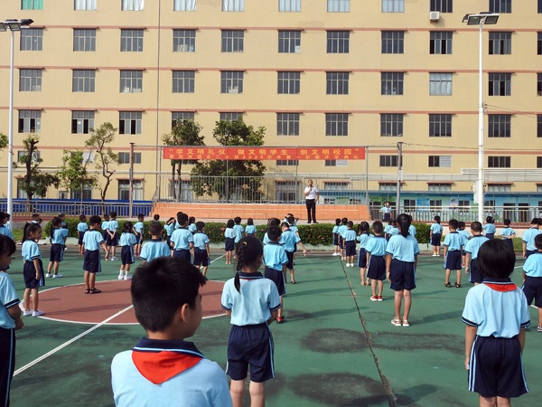 8:30分,同學們排著整齊的隊伍來到操場,參加學校開學典禮。結合今年創文活動,今學期開學典禮的主題是“學文明禮儀,做文明學生,創文明校園”。開學典禮首先由學校小主持人帶領全校同學齊念社會主義核心價值觀,并向全校師生宣讀創文倡議書。接著,六(1)班的學生代表文欣蕊做新學期國旗下講話。她先介紹自己如何過一個有意義的暑假,然后代表全校同學向學校承諾要做一名愛我,愛家,愛校,愛國的四愛好學子。
