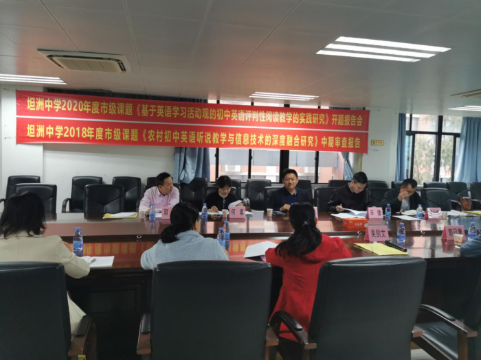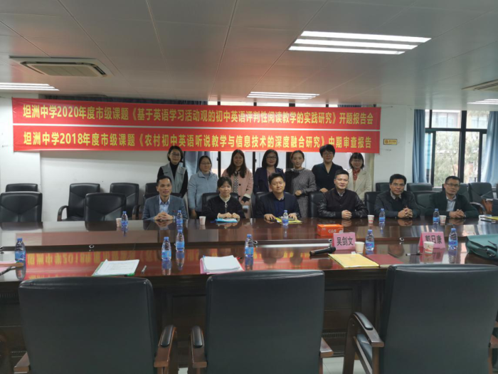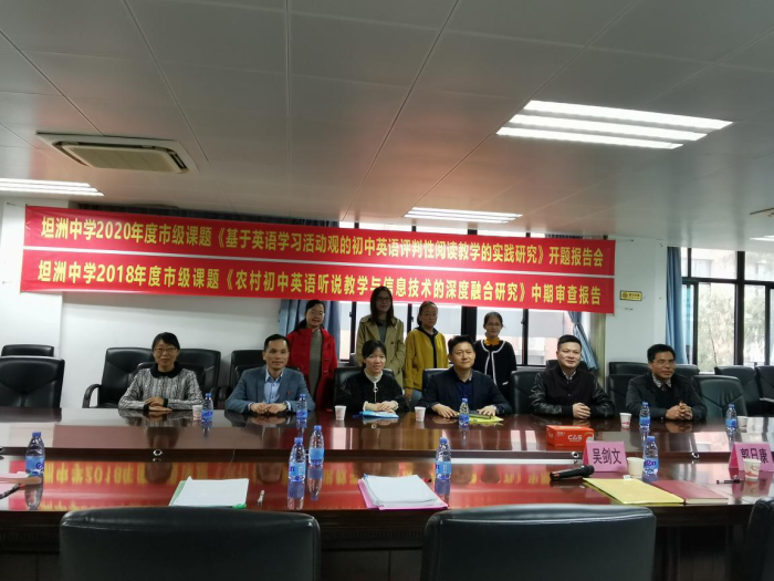 12月25日上午,坦洲中學順利召開了英語科2020年中山市教育科研立項青年課題開題暨2018年中山市立項青年課題中期評審會。中山市教研室張泰剛老師、辛健老師、何娟老師、坦洲鎮教育事務指導中心梁北橋主任、中山市名教師鄧凱老師應邀出席。坦洲中學吳劍文校長、郭日康副校長及英語科組的老師參加了會議。鄧心花主任主持會議。