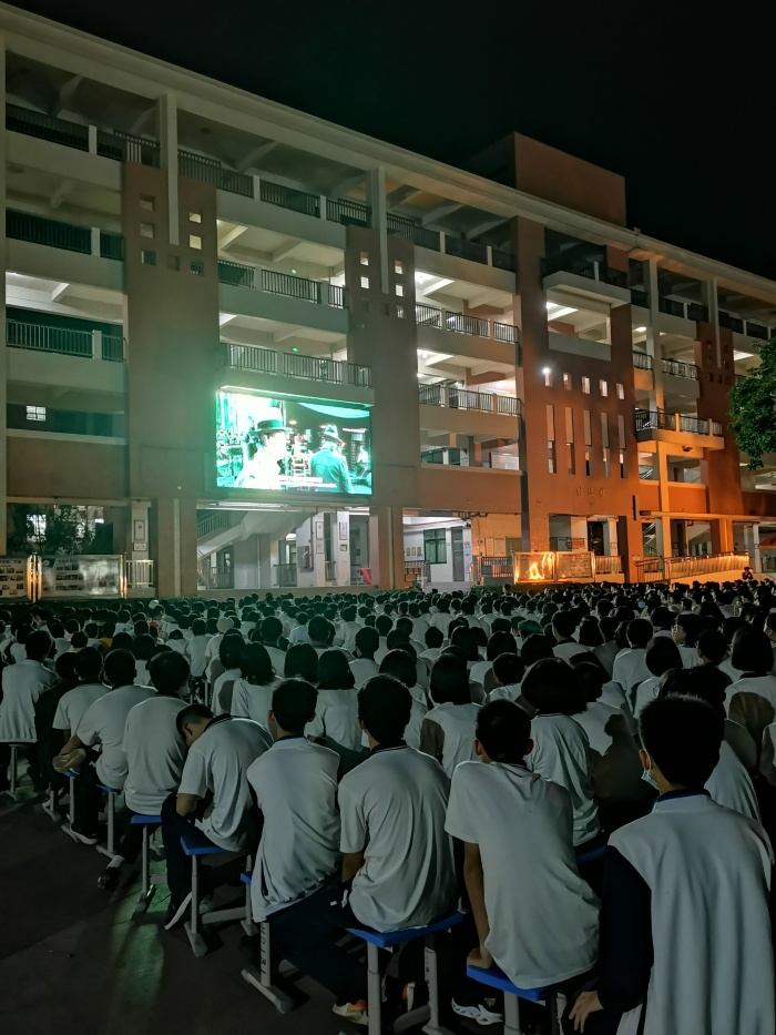 為加強愛國主義教育,激發學生愛國主義情感,豐富校園文化生活,11月19日晚上,吳劍文校長、黃金麗副校長帶領全校1800多名師生,觀看愛國主義電影《八佰》。