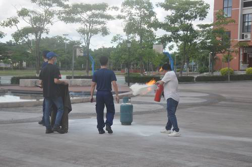本次大會邀請中山市坦洲鎮(zhèn)消防大隊黃子豪警官主持召開。在大會上,黃警官通過大量典型火災案例,借助實物和宣傳畫,結合學校工作、生活中的實際情況,生動詳細地為大家講述了學校防災須知、消防器具使用以及火場逃生技巧。一幅幅因火災造成的悲慘畫面,一個個觸目驚心的數字,一行行溫馨的提醒文字,讓在場的教職工切身感受到大火的無情和生命的脆弱。黃警官一再警示大家消防安全無小事,要求大家從工作生活中的小事做起,居安思危,預防為主。黃警官還為全體教職工實操演練煤氣瓶著火和汽油桶著火兩種情況的消防示范,會后大家在黃警官的指導下踴躍參與實操演練。