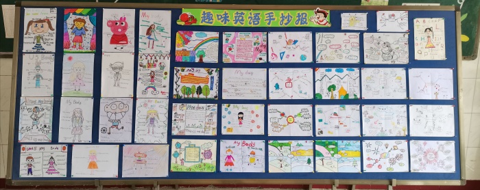 活動前,李瑩老師進行本次活動的宣傳,明確活動目的、作用和指導老師的職責。英語老師們對學生進行宣傳、動員。同時利用一節(jié)早讀課進行手抄報的制作培訓。活動中, 選擇思維導圖形式的同學們自主選擇單元或課時的知識點,進行歸納、整理,根據(jù)自己的理解,找出知識點之間的關系,通過關鍵詞理清內(nèi)容重點,深入挖掘知識點的內(nèi)涵,然后將抽象的英語知識具體化、形象化,設計單元思維導圖或課時思維導圖,“畫”出個人的英語思維和設計思路。而選擇創(chuàng)意圖配文的同學自主選擇主題內(nèi)容,采用圖配詞或圖配文的形式,將英語與精美的圖畫有機結合起來,建構聯(lián)結,深化知識記憶。本次展示活動深受學生喜愛,獲得廣泛參與,展示的作品形式新穎、內(nèi)容豐富。有的學生們創(chuàng)作了有趣的圖配詞作品,他們用畫筆畫出趣味十足的卡通形象,對卡通人物的身體部位進行配文,幫助記憶;有的學生創(chuàng)作了課文主題思維導圖,圖文并茂的同時讓知識框架、重點內(nèi)容一目了然;還有的學生創(chuàng)作了精美的圖配文,一篇短短的主題作文配上賞心悅目的圖畫,可見學生的語言運用能力和審美能力。學校英語組所有教師一直致力于思維導圖及圖配文形式在課堂教學中的應用。他們不斷探索思維導圖在復習導入、單詞學習、課堂內(nèi)容復習等教學環(huán)節(jié)的運用,努力提高學生英語學科核心素養(yǎng)。本次展示活動正是學校思維導圖教學成果的一次集中呈現(xiàn)。本次比賽以年級為單位評出,一等獎12名、二等獎15名、三等獎20名。
