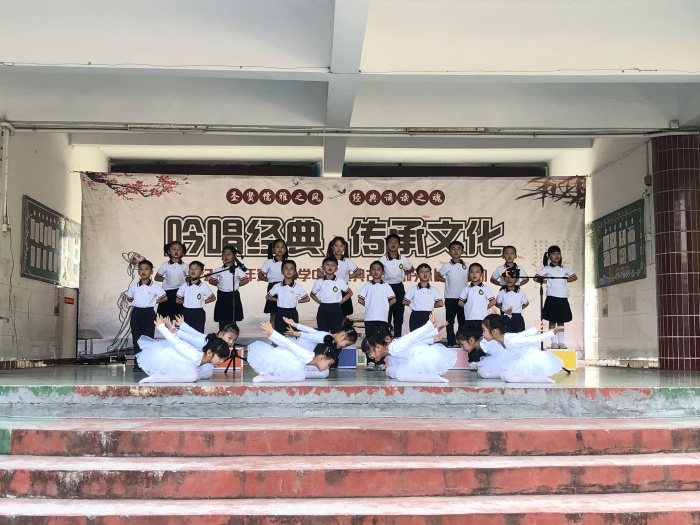 活動伊始,由武術興趣班的同學帶來了氣勢磅礴的武術表演,為本次活動拉開序幕。本次比賽以班級為單位,參賽節目內容均圍繞“中華古典詩詞”,表演形式更是豐富多樣,吟誦與舞蹈的結合,充分展現了吟詠的魅力,將中華傳統文化滲透在每一個節目中,給全校師生呈現了一個精彩絕倫的舞臺。為豐富比賽過程,在比賽中場增加了詹靈靖和林凝同學參加中山市中華經典吟唱比賽的節目——《金縷衣》,在比賽結束后增加了我校參加2020年中山市中小學生民樂、戲劇、合唱比賽的節目——《我們需要“補”什么》。