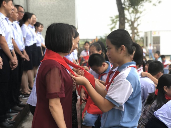此次活動本著“簡樸、熱烈、務(wù)實、高效”的原則,力求變單一的慶祝活動為主題慶祝活動,形式新穎,活動內(nèi)容豐富。此次慶祝活動共五個環(huán)節(jié):首先由升旗儀式開始。接著,四(1)班全體學(xué)生為老師們詩朗誦《園丁頌歌》,華麗優(yōu)美的句子、抑揚頓挫的語調(diào)、激情飛揚的情感深切地表達了全體學(xué)生對老師的敬佩和謝意。隨后,全校學(xué)生表演手語操《聽我說謝謝你》,全校老師上臺,少先隊員為全體老師授紅領(lǐng)巾,他們用最質(zhì)樸的祝福形式向老師們表達了滿腔的感恩之情。最后由余校長講話,講話中沒有高高在上的蒼白說教,沒有浮于表面的理論空談,而是舉出自己生活中的實際例子,讓學(xué)生們懂得感恩教師情。