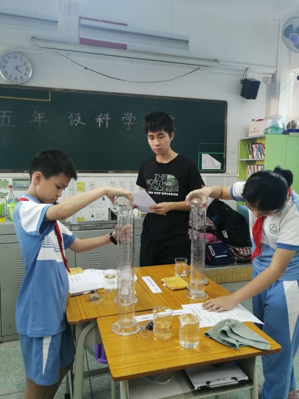 考核前,任教五年級的科學老師認真指導學生進行科學實驗,學生的興致高漲,除了在科學課上開展實驗,課后也積極參加,每個實驗每個學生操作起來都特別嫻熟。
