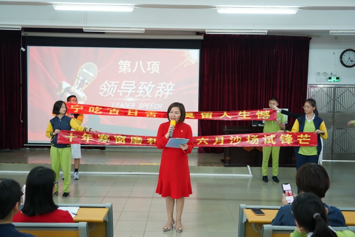 最后,陳秀文校長(zhǎng)進(jìn)行了動(dòng)員講話,她殷切希望每位考生能在沖刺中樹立必勝的信心,講求科學(xué)的方法,擁有堅(jiān)強(qiáng)的意志,發(fā)奮努力,爭(zhēng)取優(yōu)異的成績(jī),鑄造人生的第一個(gè)輝煌!