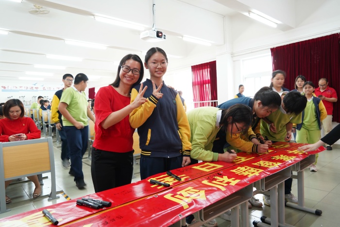 隨后,全體學(xué)生莊嚴(yán)宣誓,在紅色的勵(lì)志條幅上,鄭重地簽上自己的名字,這不僅是一種形式,更是一種責(zé)任、一種承諾,心無旁騖決戰(zhàn)百日,竭盡全力持之以恒,圓夢(mèng)中考。