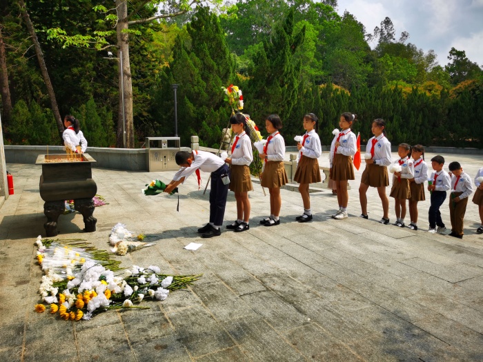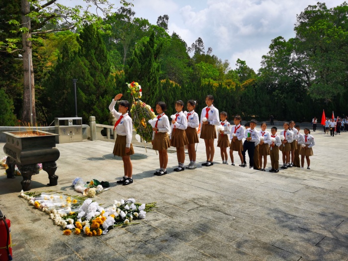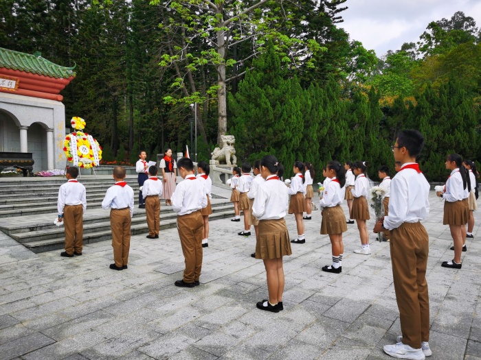 鳥兒鳴,紅花開,陽光照蒼柏,又是一年清明時。今年是中國共產(chǎn)黨成立100周年,為了對少先隊員進行愛國主義和革命傳統(tǒng)教育,中山市廣大匯翠學(xué)校少先隊大隊部組織五年級部分少先隊員前往中山革命烈士陵園進行“緬懷革命先烈,傳承紅色基因”清明祭英烈活動。