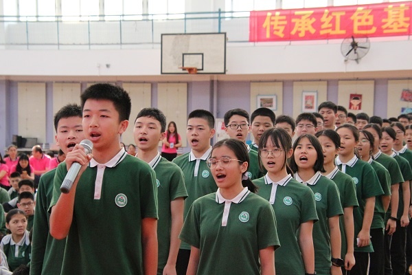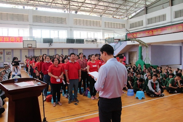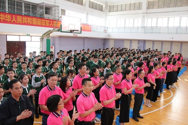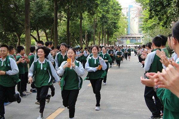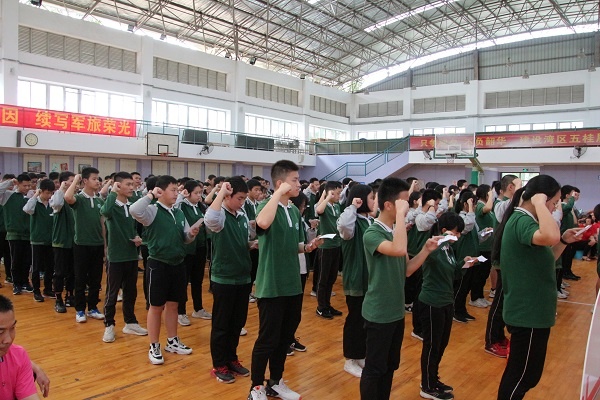 當天上午,五桂山學校全體初三學生在老師、家長和學弟學妹們熱烈的掌聲中精神抖擻地跑入會場,各班依次喊出自己班級的口號,點燃了現場的氣氛。