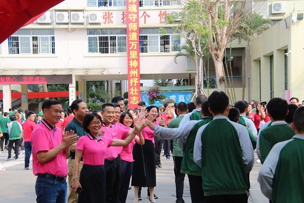 在老師、家長和學弟學妹們的吶喊聲和祝福聲中,五桂山學校初三的學子們將以最飽滿的精神狀態開啟“沖刺”模式,期盼六月的校園鳳凰花開,笑臉綻放,凱歌飛揚,加油!